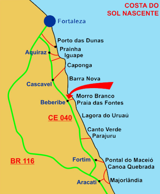 Quando saímos de Canoa Quebrada, nosso próximo destino seria ir para a cidade de Beberibe, Ce para conhecermos dois pontos turísticos: Praia das Fontes e Praia do Morro Branco.